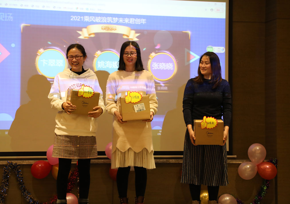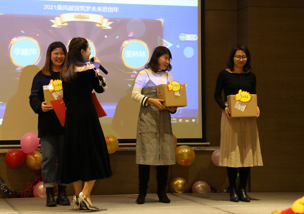 新篇章的路离不开每位员工的付出与努力,2020年大家忠于职守,兢兢业业,共同见证着君创一步步成长。为了感谢大家的付出,公司设置了颁奖环节:快速融入,工作认真,新人奖;能力突出,踏踏实实,员工奖;风雨同舟,不离不弃,工龄奖;追求优秀,业绩突出,总提成奖;信念在心,步步前进,年终奖;挑战自我,实现价值,明星奖;默默奉献,富有责任,贡献奖;除了以上提及的以外还有很多其他的奖项,衷心的感谢每位员工的辛勤付出。